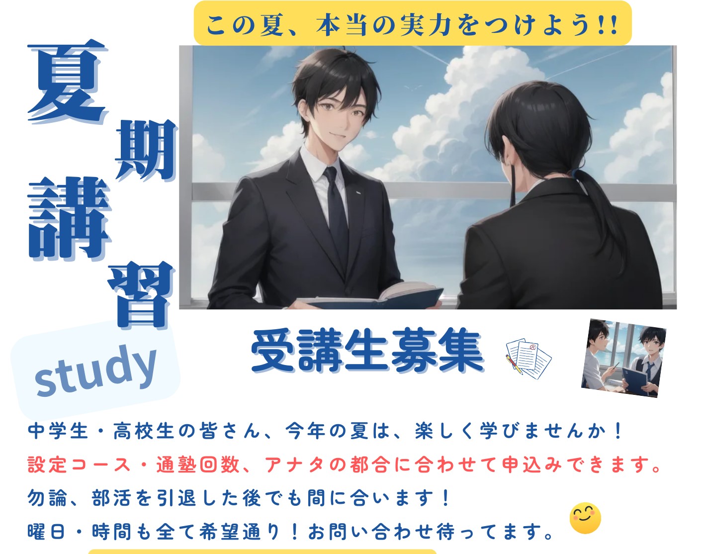 ということで、まだ8月の夏期講習会は受付中!!(^^)!です。